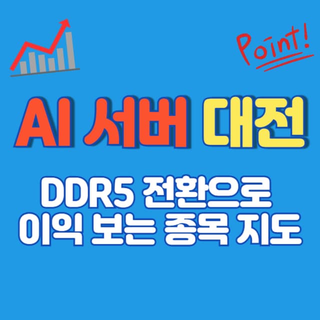 - DDR5 수혜주는 무엇이 있나요? 메모리 제조(서버용 DRAM), 모듈 핵심 칩(RCD·PMIC), 모듈 PCB, 테스트 소켓·장비 등 밸류체인 전반이에요.